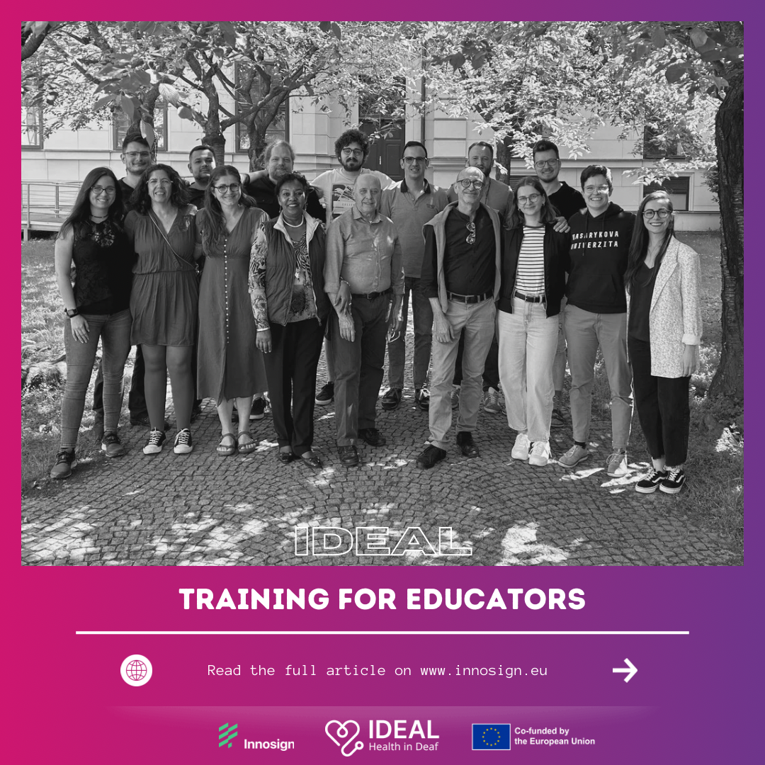From May 14 to 16, a training session for education professionals took place in Brno, attended by 15 participants from five countries: Slovakia, the Czech Republic, Hungary, Spain, and Italy. Among the participants were representatives from Innosign, as well as Diana Majerčáková, Marek Kanaš, and Pavel Škrabák. The event was hosted by the Teiresiás Centre at Masaryk University in Brno. One of the main goals of the event was to gather feedback on the guide for education professionals.